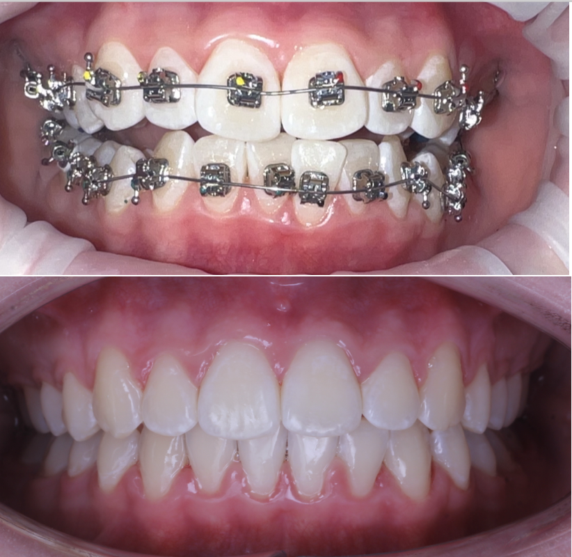Лечение проводилось на японской брекет-системе Experience. Срок лечения: 1 год 6 месяцев. После ортодонтического лечения пациентка направлена на протезирование жевательных зубов.